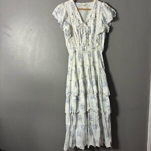 LOVESHACKFANCY Valina Maxi Dress Flutter Sleeve floral cotton coquette XS 0/2