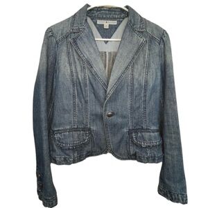 Tommy Hilfiger Vintage Denim Jacket Cropped Scalloped Puff Sleeve M