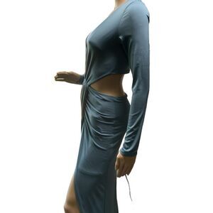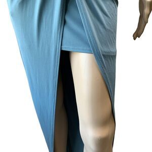 Windsor Blue Cutout Deep V-Neck High Slit Coquette Soft Girl Evening Dress Small
