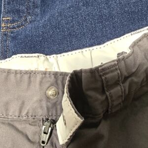 Preloved boys' size 8 shorts bundle in navy, gray, and jeans. The bundle includes 2 drawstring shorts and 1 zip and snap button closure and an adjustable waist. These are perfect for everyday wear.