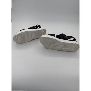 The UGG Zayne Slingback Platform Sandal in Black Leather, size 9.5, is a stylish and versatile shoe perfect for various occasions such as travel, weddings, parties, casual outings, and more. This low heel sandal features a buckle closure and a comfortable cushioned insole, making it both practical and fashionable. The black and white color combination, along with the slingback style, adds a modern touch to the design. Made with high-quality leather and a synthetic outsole, this UGG sandal is a chic addition to any wardrobe, suitable for all seasons.