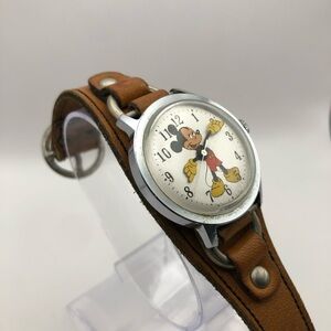 Disney Timex Vintage Mickey Mouse Unisex Watch Brown Band (Needs Battery) Works