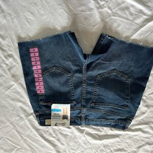 Chic dark blue jean shorts. Perfect for casual style. Comfortable fit.