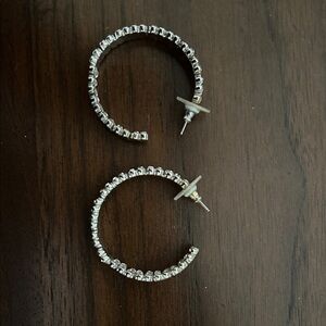 Add a touch of elegance with these stunning silver hoop earrings. Perfect for any occasion.