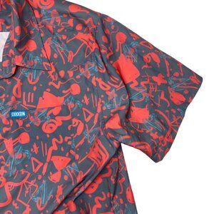 Dixxon Screech Gray/Multicolor Short Sleeve button up Party Shirt Men's Size L