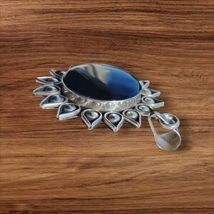 This chic silver and black sunburst necklace is a perfect accessory to elevate your style. Its unique design adds a bold statement to any ensemble.