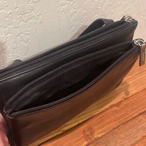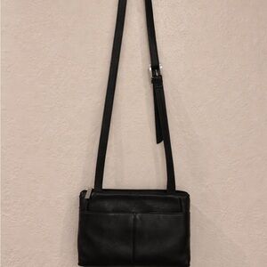 HOBO International Black Leather Crossbody Shoulder bag w/ double zipper closure