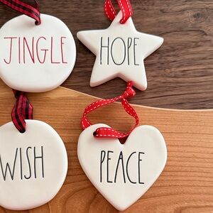 Rae Dunn Holiday Ceramic Ornament Set with Red Accents - Set of 10