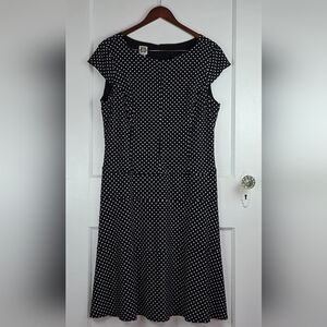Anne Klein Black and White Polka Dot Knit Fit and Flare Dress 14