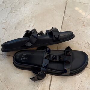 Valentino Garavani Black Pyramid Stud Slides