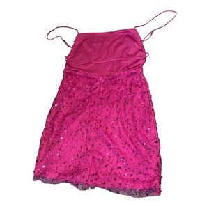 Shine in this stunning pink sequin dress, perfect for any special occasion. Its elegant design and vibrant color make it a standout piece. Features adjustable straps and a popular square neckline. Hidden zipper back. Dress it up your favorite heels and clutch and all eyes are on you!