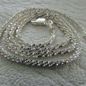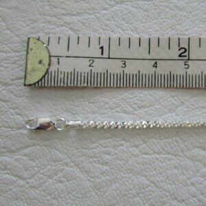 Material: Solid 925 sterling silver Origin: Made in Italy, stamped Style: Diamond-cut rope (open-cut rope) Width: Approx. 2 mm Finish: High-polish, reflective sparkle, high sparkle Clasp: Lobster clasp Condition: Brand new, never worn Available in other styles and sizes Various Lengths: 7" bracelet, 16", 18", 20", 22", 24",30" - see photo for desired length Brand NEW. Any tarnish is a result of being in storage only. Never worn. See my other sterling silver jewellery.