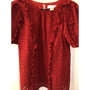 PreOwned excellent condition Rachel Parcell Top in red, size small. . 100% cotton eyelet with ruffles and puff sleeves.
