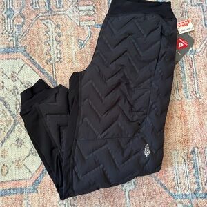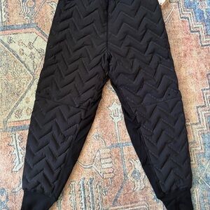 Stylish black quilted snow pants from free people. Size small. Black with a chevron pattern. Perfect for casual wear or playing in the snow.
