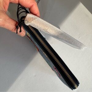 Coach Corner Zip Wristlet Signature Denim Embroidered Rainbow NWT