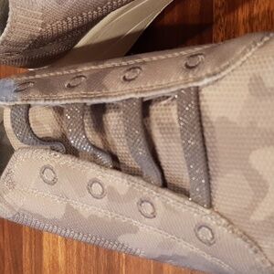 BZees womans golden knit, camo shoes size 8 see pic of measurements to insure fit. excellent pre owned condition. have box. these slip ons are machine washable, air dry. Light and dark gray camo. very stretchy. very lightweight and comfortable