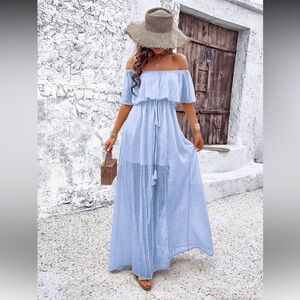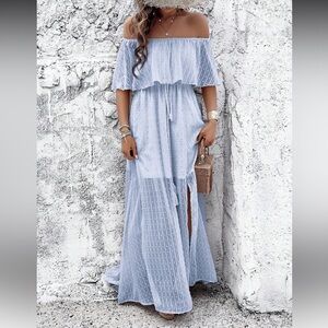 NEW Elegant Off-Shoulder Baby Blue Maxi Dress