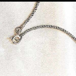 @shaliniccc Hello. The necklace is a silver tone and I'm unsure of the metal. I received it without any tarnish after 15 years of storage. It looks as if the clasp has a marking on it but I can't make it out. Thanks for asking
