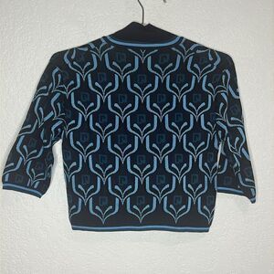 New PACO RABANNE Cropped Turtleneck Knit Top in Blue Jacquard Logo Large