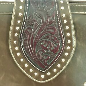 Montana West Western Style Tooled Leather And Studded Crossbody