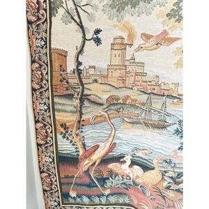 Vintage French Tapestry Au Bord de la Mer Goblys Medieval Coastal 44x34