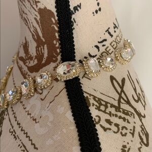 This stunning necklace features sparkling crystals set in a luxurious gold and silver design. Perfect for adding a touch of elegance to any outfit.