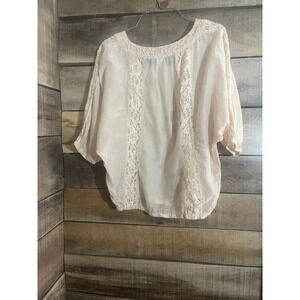 Peer Tee Inc Sheer Lace Trim Blouse Top Cream Boho Lightweight M