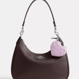 NEW Coach Purple Heart Bag Charm In Signature Leather - Heart Charm