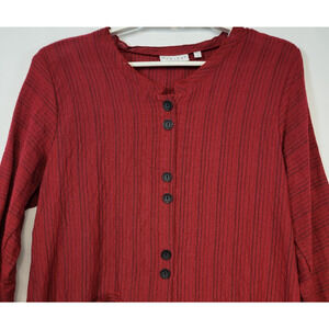 Habitat Tunic Boho Artisan Style Shirt Womens Small Red Striped Button Lagenlook