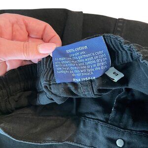 Gently worn with light overall wash fade, especially along seams and fly area. Fabric clean and intact with no stains, holes, or fraying; button, zipper, and elastic waistband all function properly.
