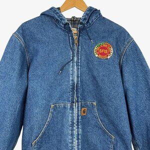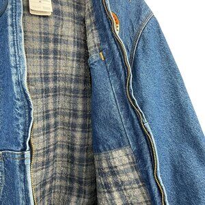 Vintage Carhartt Blanket Lined Jacket Mens M Denim Hooded Buffalo Plaid J139 DST