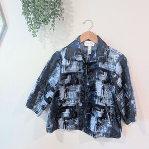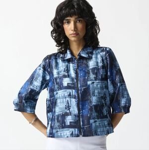 Joseph ribkoff blue, black and silver zip jacket.