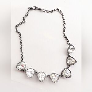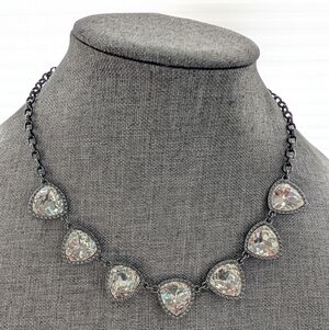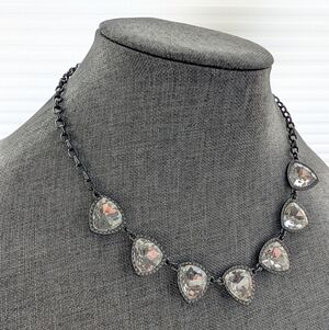 Trendy Gunmetal Gray Sparkly Glam Glam Rhinestone Evening Prom Collar Necklace