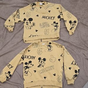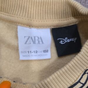 This vibrant yellow hoodie from Zara features playful Mickey Mouse prints, offering a fun and casual style. Designed for comfort, it boasts a relaxed fit and a classic crew neckline, perfect for everyday wear.