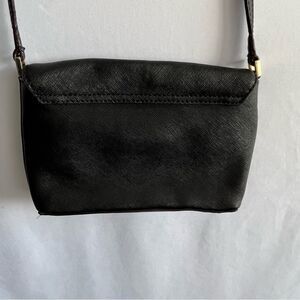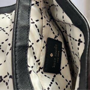 The Kate Spade Black & Silver Leather Crossbody Bag is a stylish and versatile accessory for women on the go. Made of high-quality leather with silver hardware accents, this small rectangular bag features a clasp closure and a black crossbody strap for easy carrying. With inner pockets and an adjustable strap, it is perfect for traveling or casual outings, adding a touch of city chic to any outfit. The classic black exterior color and designer brand make this bag a timeless piece that can elevate any look with its sophisticated design. Measures 8.5" x 5" 100% Genuine Cow Leather