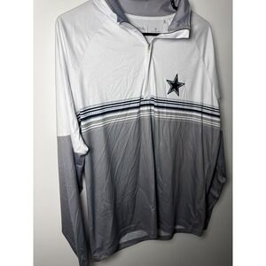 Keywords: Dallas Cowboys, NFL, Football, Sports, Team Apparel, Athletic, Pullover, Long Sleeve, Quarter Zip, Golf Shirt, Activewear, Gray, White, Men's Shirt