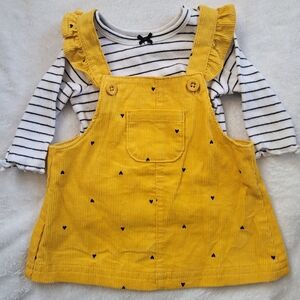 Yellow Corduroy Pinafore Dress with Striped Top