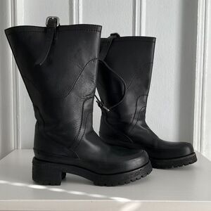 Tags: prada, boots, leather, rain, vintage, mid-calf, designer