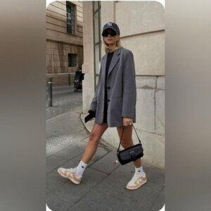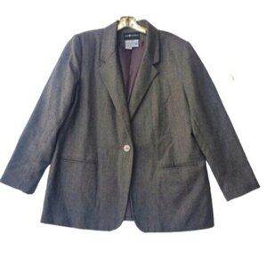 100% Wool Blazer Coat Jacket Single Button Waist 16P Grey