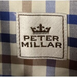 This stylish Peter Millar button-up shirt is perfect for any occasion. With a classic check pattern in brown, white, and blue, it is sure to make a statement. The long sleeves, button-down collar, and medium fit make it ideal for any man's wardrobe. Whether you're dressing up or going casual, this shirt is the perfect choice.