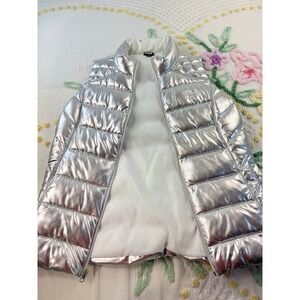 FILA SPORT Puffer Vest Silver Metallic Full Zip Padded Jacket Size M