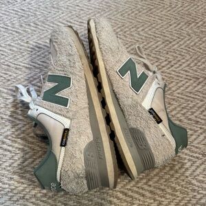 New Balance 574 Calcium New Spruce Cream and Green Tennis Shoes | Size 10