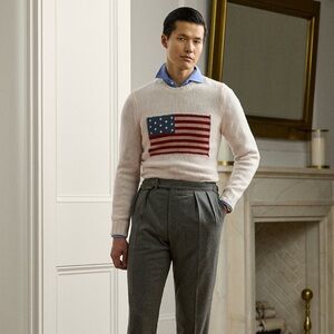 Ralph Lauren Purple Label Cream Cashmere Crewneck Sweater with American Flag NWT