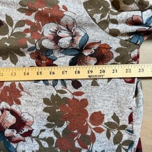 Avenue Women's Size 18/20 Pullover Blouse Floral Slit 3/4 Sleeves Gray Knit Top