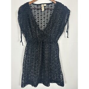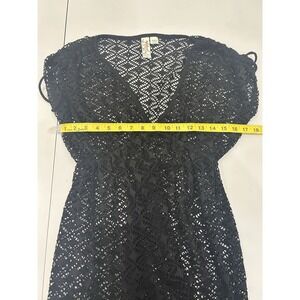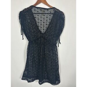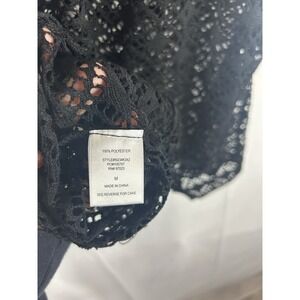 Y2K Crochet Open Knit Fairy Grunge Babydoll Top Tunic Size M Black Whimsigoth