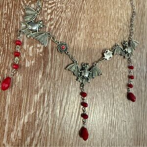 Handmade bats goth necklace Silver with red accents Bought off Etsy