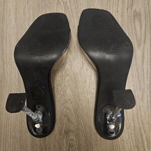prettylittlething Black PU Clear Heeled Mules