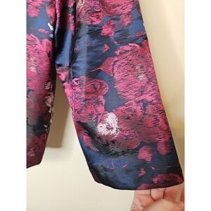 Alex Evenings Jacket 2X Pink Blue Floral Open Tapestry Romantic Elegant