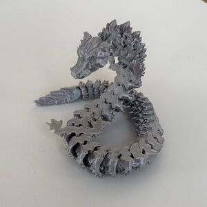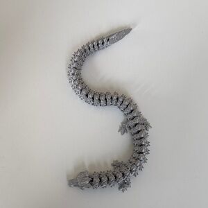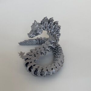 Cool and fun 3d printed silver dragon. Roughly 15 in long.