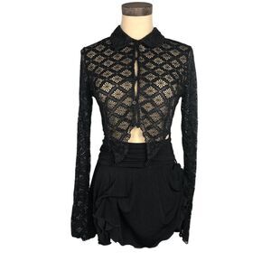 beautiful sheer black lace long-sleeve cropped blouse — button-up style, super chic and flattering fit